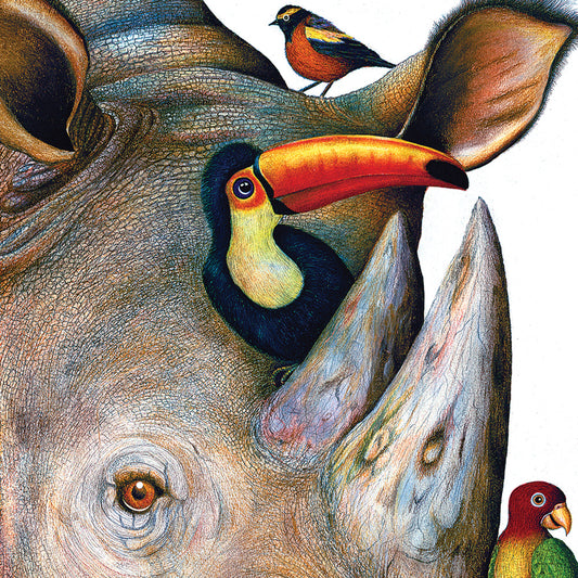 The Hippo & Flamingo (Matted) Art Print 5x7